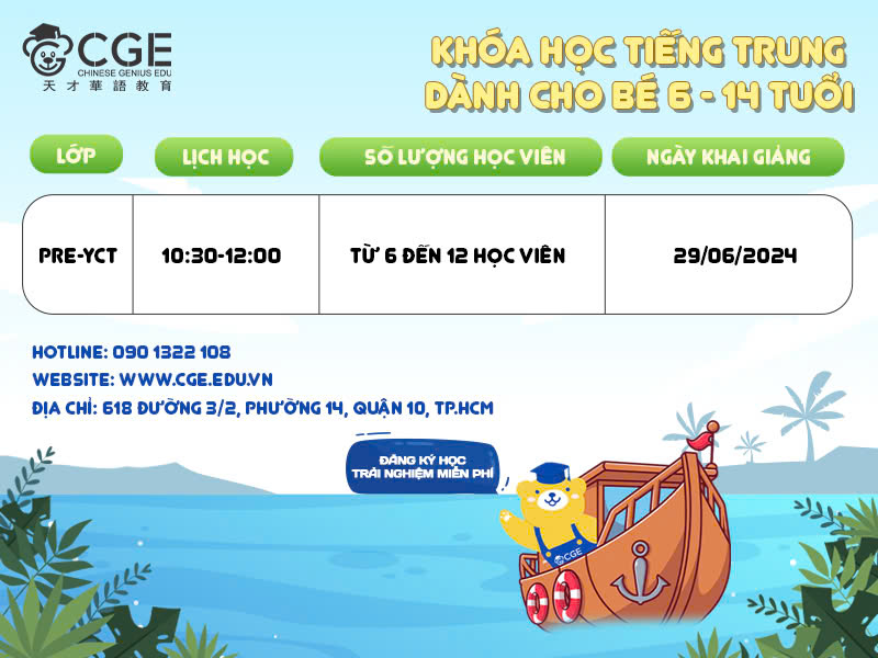 Lịch Khai Giảng Khóa Học Tiếng Trung Trẻ Em - CGE Hoa Ngữ Quốc Tế