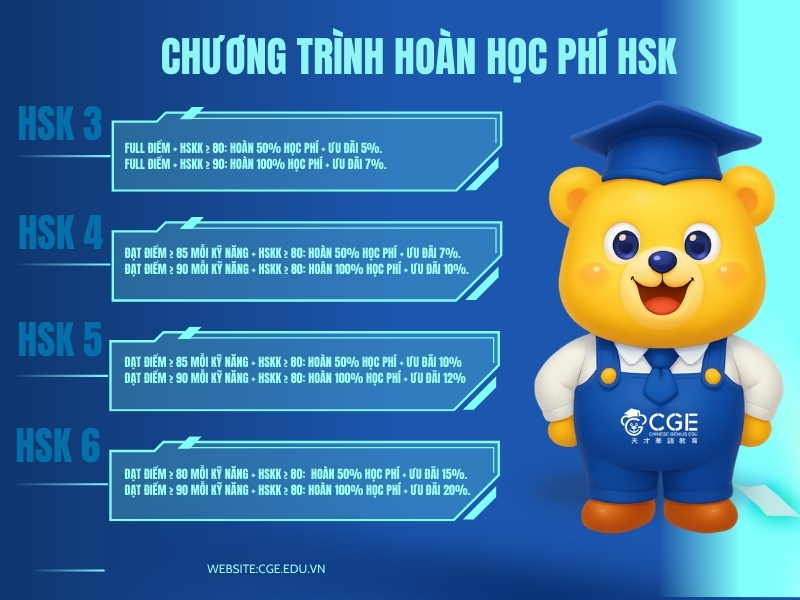 HỌC HSK CÙNG CGE - HOÀN PHÍ KHÔNG GIỚI HẠN: CHÍNH SÁCH HOÀN HỌC PHÍ HSK LÊN TỚI 100%!