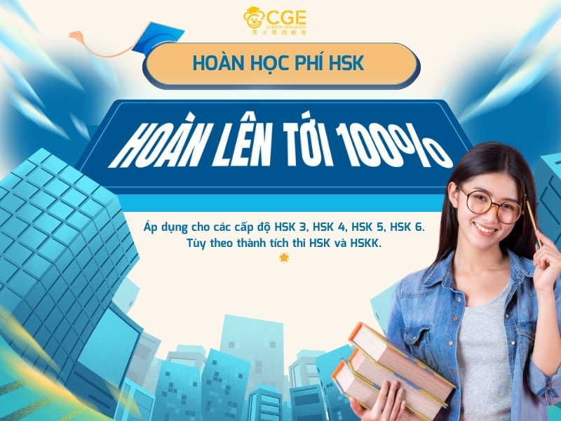Bạn đang ôn luyện HSK và mong muốn vừa học chắc vừa tiết kiệm chi phí? CGE mang đến chương trình “Học HSK cùng CGE - Hoàn phí không giới hạn”, chỉ cần bạn đạt kết quả theo quy định, CGE hoàn học phí lên đến 100%. Đây là cơ hội chưa từng có tiền lệ, giúp bạn vừa học giỏi tiếng Trung vừa có thể nhận lại học phí từ chính nỗ lực của mình.