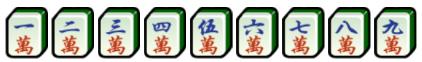 Vạn (万子): Tất cả những con bài này đều có màu đỏ, viết chữ số Hán tự từ "Nhất" tới "Cửu" và thêm một chữ "Vạn" phồn thể bên dưới.